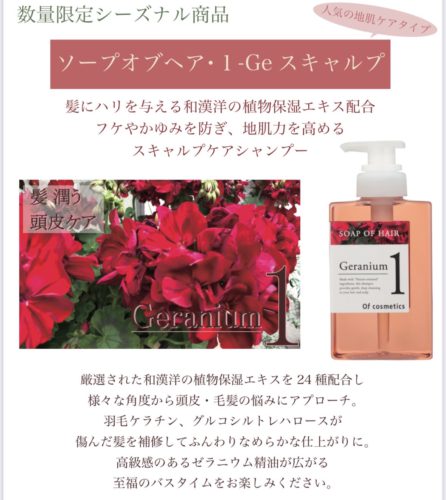 毎年人気の薬用シャンプー、ゼラニウムの香りが発売開始します✨